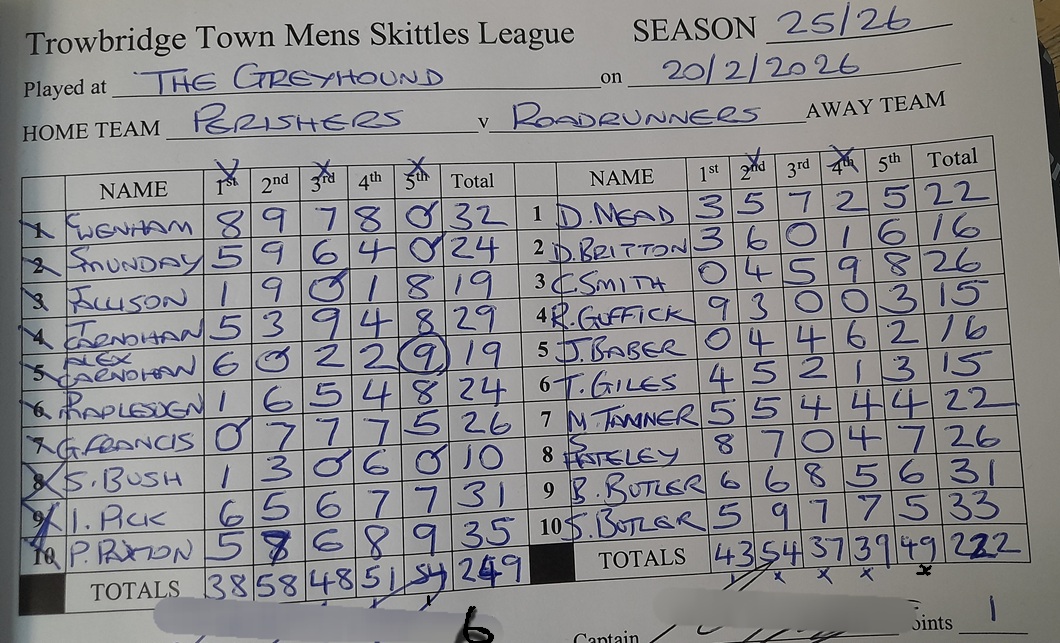 Friday 6th Mar: Twelve Bells v Perishers @ Cricket Club (P Allen Qtr Final)